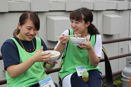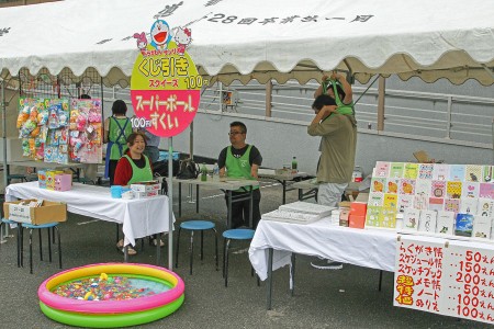 会場には、エルフィン自治会のポップコーン、エイト寮自治会の輪投げボール入れゲーム、各事業所による出店のほか、ビール、串焼き、焼きそば、かき氷、綿あめなどに、たくさんの来客で賑わいました。