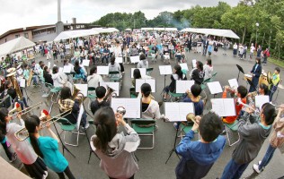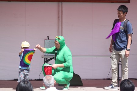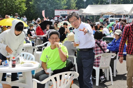 ステージでは、「西の里中学校吹奏楽部」や「北広島ふるさと太鼓保存会」の躍動感あふれる演奏に続き、緑の全身タイツで登場した「緑の妖精やまちゃん」のマジックで会場は笑いと驚きに包まれ、「THE人生ズ」のバンド演奏では、沢山のお客さんの手拍子と笑顔が印象的でした。その後の「ビンゴ大会」では、会場中から歓声とため息が聞こえ、フィナーレでは「動・夢・舞」のよさこい演舞で大いに盛り上がりました。
