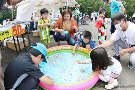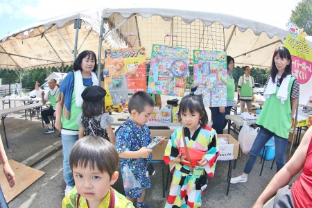 会場には、利用者や施設職員による、子供も楽しめるゲームコーナー、腕によりをかけた大人も大満足な本格的な手作りプリンや冷やし団子、当法人や他団体の物販コーナーに、その他ゆでとうきびやかき氷、焼きそば、焼き鳥、豚丼、そば、ビール等の出店があり、来場者の笑顔が溢れる1日となりました。